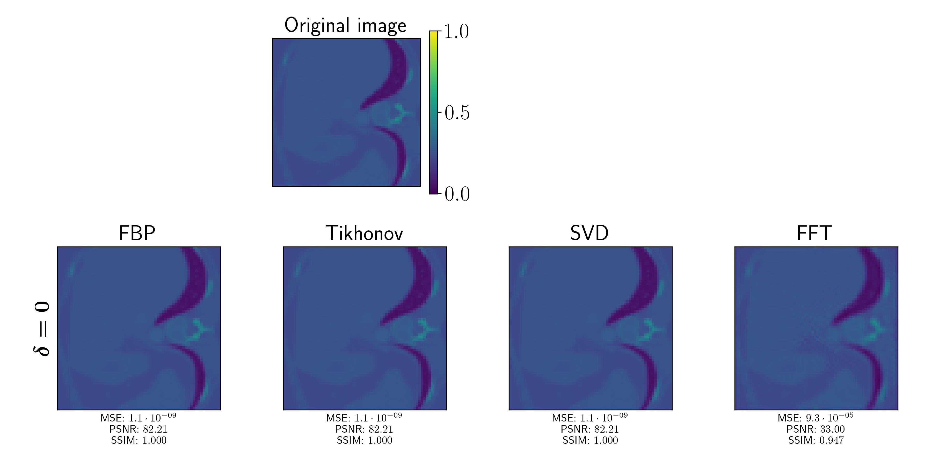CAMC 2024Proving the convergence with regards to the noise level of two regularization methods for 2D parallel beam CT-reconstruction, and investigating the effect of discretization errors at different resolutions.